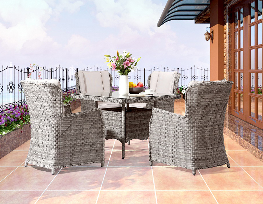 Vedenkestävyys: Rottinki on luonnostaan vedenkestävä, joten se on ihanteellinen ulkokäyttöön. Se ei ime helposti kosteutta, mikä auttaa estämään vääntymisen tai mätänemisen. On kuitenkin suositeltavaa käyttää tyynyjä tai päällisiä verhoilun suojaamiseksi, koska kosteus voi vaikuttaa kankaaseen.