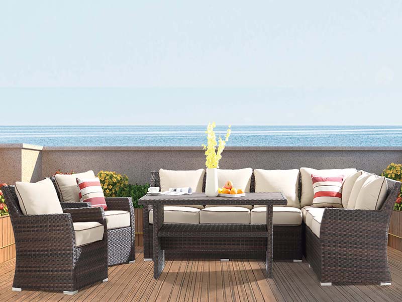 Koko kovaa suunnittelu kätevää kuljetusta varten, suunniteltu korkekaikkia lujuudella PE -rottinkilla kudottu jauhe päällystetty alumiini kehys vastustaa all sääolosuhteet ja tarjoavat tasaisen ja mukavan oleskelukokemuksen ulkona elämästä.